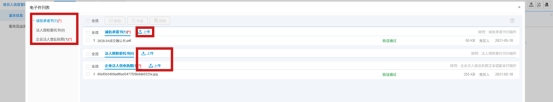 4、点击电子件管理,上传诚信承诺书、营业执照、开户许可证(JPG格式)。(诚信承诺书在和田公共资源交易网--公告--左下角相关附件中下载模板。