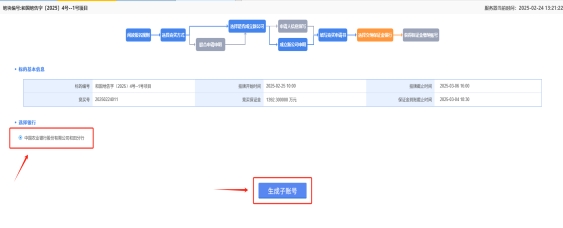 7、点击勾选银行生成子账号此处生成唯一的保证金子账号,每个标的对应一个保证金账号每位竞买人都有自己唯一保证金虚拟子账号如果一个人报名十个标的那么就有十个保证金子账号)。